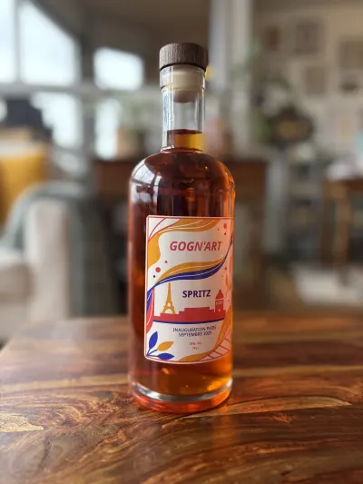 Inspirez-vous de cette réalisation et créez votre propre bouteille personnalisée. Choisissez votre boisson, votre bouteille et concevez un cadeau unique.